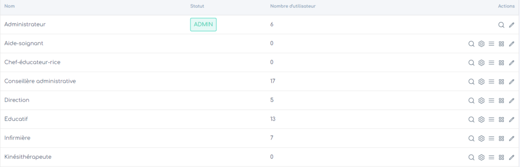 L’accessibilité aux informations des personnes utilisant E-institution se configurent dans votre menu « paramêtres » et « rôles »